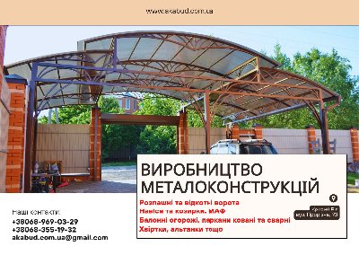 Виробництво та встановлення металоконструкцій під ключ. Ворота, навіси