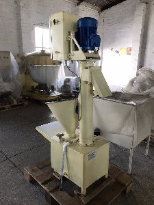 Вертикальный шнек транспортирует муку вверх и через отводной патрубок, на котором прикреплён магнитный сепаратор, она поступает в приёмную ёмкость для просеянной муки.