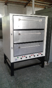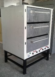 Шкаф жарочный ХПЭ-3 — является универсальной печью, он используется для выпекания формового хлеба (пшеничного или ржаного), а также булочек, батонов, пирожков, что можно отнести к подовому хлебу. В нем можно выпекать различные кондитерские изделия — печенье, коржи, кексы и т.д. Также он пригоден для запекания, жарки и приготовления блюд из овощей, мяса, рыбы, творога и других разнообразных продуктов.Состоит печь из трех ярусов (камер), пекарских секций. Каждый пекарский ярус (камера) является сварной конструкцией (коробом), закрытой со всех сторон, кроме одной, где находится загрузочное место и закрывается дверкой. В пекарской камере снизу и сверху устанавливаются ТЭНы для обогрева. В каждой камере установлены увлажнители: на задней стенке крепится ванночка-парообразователь к которой по трубопроводу поступает вода, заливаемая в клапан-воронку на передней части печи. Каждый ярус может работать в своем температурном режиме индивидуально. Заданные параметры температуры(верхний и нижний режим) устанавливаются и контролируются терморегулятором. Температуру верхних и нижних ТЭНов можно задавать различную, в соответствии с технологическим режимом выпечки. Эффективная термоизоляция обеспечивает сохранение тепла внутри камеры.