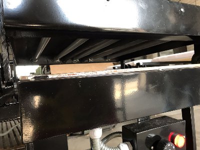 Выпечка происходит следующим образом: заготовка выкладывается на одну из подушек, затем переносится на жарочную поверхность и после этого накатывается тележка с верхней термокамерой. В это время пока выпекается первый лаваш, готовим следующий.