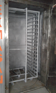 Ротационная печь данной модели предназначена для выпечки широкого ассортимента хлебобулочных, кондитерских изделий и хлеба, на предприятиях пищевой промышленности, в кондитерских цехах и пекарнях.Эти печи содержат в себе две основные функции: конвекционный поток воздуха и вращение тележки вокруг своей оси. Циркуляционный электровентилятор производит равномерный обдув горячим воздухом в пекарскую камеру, через идеально выставленные воздуховоды и форсунки которые предназначены для дополнительной регулировки потока. Поворотная платформа обеспечивает вращение тележки с продукцией, устойчива к заклиниваниям и перекосам. Благодаря сочетанию этих двух основных принципов печь имеет высокий коэффициент полезного действия. Управление печи мануальное, расположено на передней панели. Для обслуживания и ремонта все основные узлы и механизмы находятся в легкодоступных местах. Печь оборудована парогенератором с большой производительностью, для запаровки всего объема пекарской камеры с продукцией.