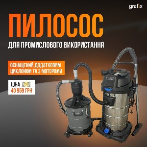 ?Пилосос ефективно використовують для прибирання всіх видів виробничих приміщень, а також будівельних майданчиків завдяки великому вибору зʼєднань.