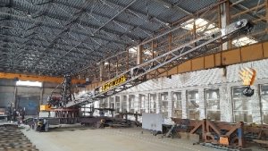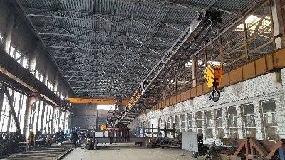 Устройство используется для монтажа коксовых батарей. Это стреловой кран, высота подъема 15,8м. Машина состоит из передвижной рамы на четырех двухребордных колесах (два приводные и два холостые), поворотной платформы с ОПУ (радиус поворота 270 градусов), стрелы с максимальным вылетом 16,3 м, приводов, лебедок подъема стрелы и груза, блочной обоймы с кованным крюком, контргруза и шкафов управления с дистанционным радиоуправлением, а также приборов безопасности.Популярные объявления