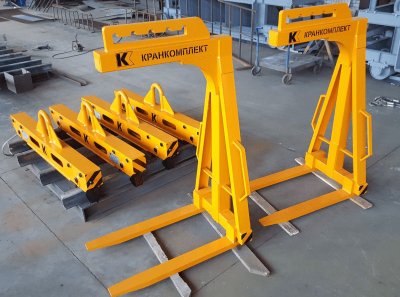 ООО "Завод Кранкомплект" имеет возможность изготовления вилочного захвата.Захват подобного типа помогает работать со штучным грузом, в специальной таре, контейнерах, на поддонах.