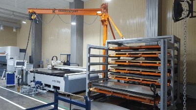 Хранение листового материала осуществляется на полках, которые загружаются погрузчиком или краном.