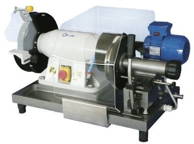 Поворотный стол с магнитным приводом от электродвигателя, регулирует точность шлифования. Замкнутая система охлаждения питается от насоса с подачей воды под высоким давлением. Стандартный набор оборудования включает в себя необходимые редукции, позволяющие затачивать наборы крестовых ножей, диаметром от Ø65 до Ø200. Другие диаметры доступны по запросу.
