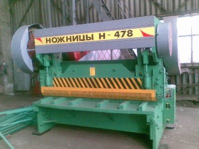 Ножницы кривошипные листовые с наклонным ножом Н-478 предназначены для прямой поперечной резки листового металла толщиной до 16 мм, шириной до 2200 мм с временным сопротивлением до 500 МПа (50 кгс/мм.кв.).