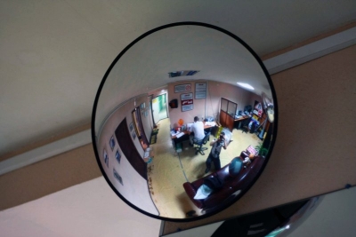 Зеркало сферическое внутренние. Диаметр 500 мм. Предназначено для установки в различных точках ведения наблюдения, пропускных пунктах, кассовых узлах, пунктах проверки и т.д. Высокое качество зеркальной поверхности позволяет получать очень высокое качество отражения с высокой степенью видимости деталей. Качество материалов позволяет обеспечить долговечность и надежность.Зеркало бесплатно комплектуется стандартным креплением.