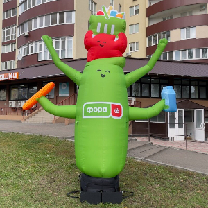 Надувная рекламная фигурка с машущей рукой указывает клиентам путь к покупкам, напоминает о том, что, возможно, забыли, или давно хотели купить.