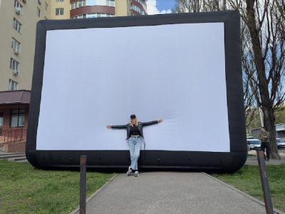 Экран надувной для уличного кинотеатра изготовлен из ткани Оксфорд 340D и 600D, рабочая температура использования -45 - +80°С.