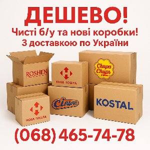 Шукаєте, у що спакувати речі чи товари? Не хочете переплачувати за нову упаковку? Ми вас зрозуміли!Пропонуємо чисті, цілі, міцні картонні коробки після одноразового використання, а також абсолютно нові - на будь-який смак і розмір. Ідеальні для переїздів, зберігання, відправки товарів, ремонту і навіть творчих ідей.