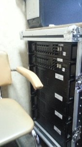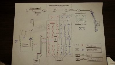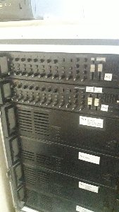 Система состоит из: ПК, переферии, 6 усилителей звука, 68 уличных рупоров, 1500 метров кабелей.