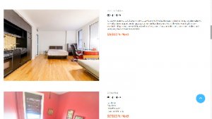 - головна сторінка: головне меню, карта з об'єктами та коротким переглядом об'єкта (фото, назва, параметри, ціна), схема роботи, форма пошуку за параметрами, що цікавлять клієнта, список апартаментів, форма підписки, футер;