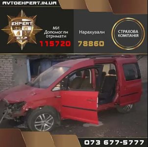 - оценка стоимости восстановительного ремонта - от 1730 грн