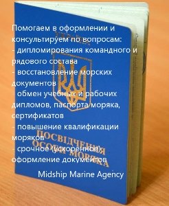 - обмен учебных и рабочих дипломов, паспорта моряка, сертификатов