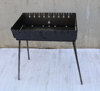 Мангал-чемодан просто незаменимая вещь на природе, пикнике, рыбалке и охоте. Очень компактный и удобный для выездных поездок, не занимает много места в машине и удобно переносить за ручку. За пару минут раскладывается из чемодана в рабочий мангал. При толщине металла 2 мм мангал хорошо держит жар, не прогорает и его не ведет от жара благодаря усиленной конструкции. Можно использовать как уголь для мангалов, так и дрова. Мангал имеет 2 уровня регулировки шампуров, что позволяет регулировать степень готовности блюд.На 6 шампуров-399