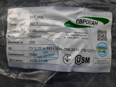 Кабель Ввг нгд 3*2, 5.виробник Тов "європан" (карат Лтд)