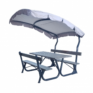 Альтанки ми пропонуємо у базових кольорах: темно сірий, світло сірий, бежевий. Проте, під замовлення можна підібрати той колір, який найбільш відповідатиме побажанням замовника. А от лави та столи для альтанок вироблені з поєднання дерева та металу.
