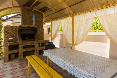 На территории находиться просторная зона отдыха, с большой беседкой и печью барбекю, детская площадка, а также есть: летняя кухня, душ, туалет, парковка для машин.
