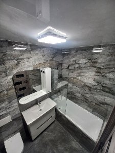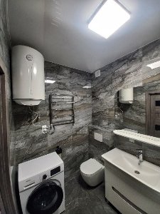 Санвузол:пральна машина, болер, ванна із скляною перегородкою, електросушка для рушників, витяжка електрична.