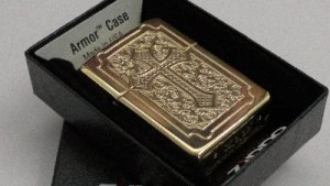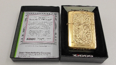 Продам зажигалку Zippo 29436 Armor Eccentric High Polish BrassАрмированная бензиновая зажигалка Zippo 29436 Armor Eccentric High Polish Brass. Утолщенный, латунный корпус зажигалки имеет глянцевую, золотистую хромированную поверхность. На лицевой стороне методом глубокой резной высечки нанесен яркий, оригинальный узор с крестом по центру