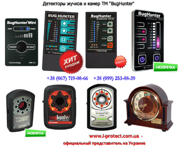 Детекторы жучков и камер самый лучший модельный ряд представлен в нашем интернет-магазине «iprotect»,мы являемся официальным представителем ТМ «BugHunter» в Украине, так же у нас представлен широкий ряд детекторов жучков и камер иных торговых марок.Детекторы жучков и камер- лидеры на рынке безопасности и точности в работе.Быстро обнаружат различного рода жучки и скрытые камеры. С помощью антижучков Вы не только обнаружите шпионские средства, но и узнаете их точное месторасположение, после чего сможете благополучно их удалить.Диапазон частот, в которых они работают очень обширный(от 50 до 3000 Мгц).В связи с этим можно говорить о чувствительности БагХантер к различного рода сигналам. В устройствах также присутствует настройка под «радиофон» во время поиска, благодаря чему не реагируют на фоновые шумы, а только на жучки!Также все детекторы работают абсолютно бесшумно.Имеют компактные размеры.
