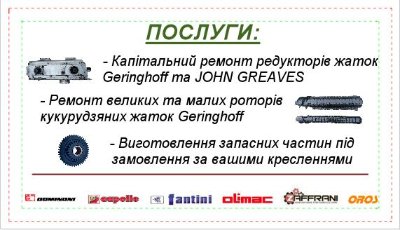 Послуги:-кaпітальний ремонт редукторів жаток Geringhoff та JOHN GREAVES;