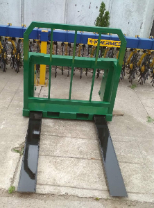 Вила для піддонів (паллетні) Основні технічні характеристики вил: агрегатуються із фронтальними навантажувачами тракторів МТЗ, ЮМЗ, Т-40; ширина вил – 0.9 м; глибина захвату – 1.2 м; вантажопідйомність – 800 кг; маса вил – 120 кг.Можливі варіанти комплектації навантажувача: