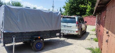 Усиленный одноосный прицеп Днепр-300. Под усилением подразумевается: борт обшит профильной трубой, профильные перемычки на дне прицепа,рессора выдерживает 1.5 т.Тент евро-фура и брызговики в ПОДАРОК!