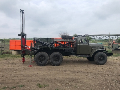 Буровая установка БГМ 1 на базе Зила 157 малая наработка в отличном состоянии Буровая установка БГМ -1 предназначена для бурения на любом рельефе и под разным углом глубиной 100 метров и диаметром от 0 до 400 мм. Машина имеет короткую мачту 3,5 метра, которая позволяет проникать и работать ограниченном пространстве. Данная установка бурит как горизонтально так и вертикально, а также с помощью механизма может работать на боковом склоне ( показано на фото). Сама мачта наклоняется при работе бурового инструмента и практически может делать наклонную скважину, проколы по дорогам, эстакадам и т.д. Данная буровая может делать статистическое зондирование почвы глубиной до 30 метров (способом задавливания) и более, применяя анкерную привязку к почве, для этого имеется крюк под установкой. Цена 15000 дол.Популярные объявления