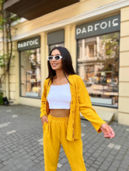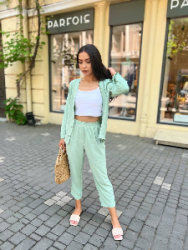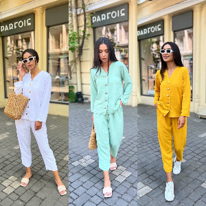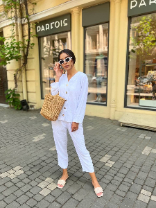 Рубашка свободного кроя, застёгивается на пуговицы.