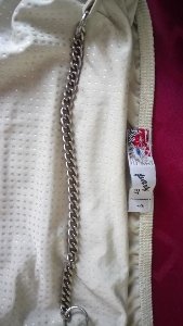 Декорирована цепочкой серебряного цвета (вокруг шеи).