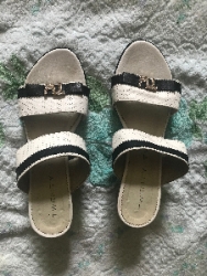 3) Босоножки женские на устойчивом каблуке легкие, удобные, б/у (Twenty-two Украина). Нат.кожа, цвет черный с белым декором. В прекрасном состоянии (как новые). Надевала 3 раза. (размер 36,5 - 37) 100 грн.