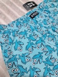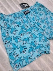 Модель трусів виконана в яскравому блакитному кольорі з веселим принтом мультяшних акул — ідеальний вибір для тих, хто цінує комфорт і любить виділяється навіть в деталях.
