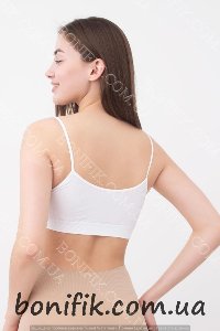 Жіночий безшовний топ виготовлений із якісної мікрофібри, з використанням кругової в'язки, без зшивання з боків, яка дозволяє шкірі дихати під час рухливих спортивних занять.