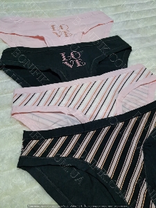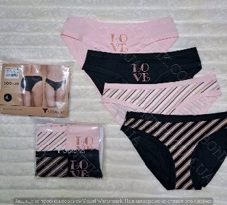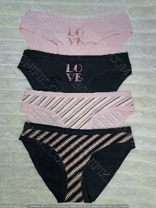 Вам представлена нова модель трусиків-сліп декоровані принтом в смужку та однотонні з написом "Love" в наборі. Жіноча білизна в упаковці із 4 шт. в асорті кольорів.