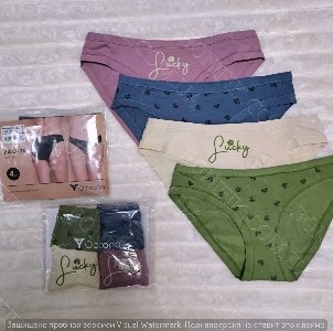 Комплект трусів-сліп складається із 4 кольорів з малюнком листочків і напису "Sucky". Виготовлені із бавовни з еластановою ниткою для збільшення розтяжності.