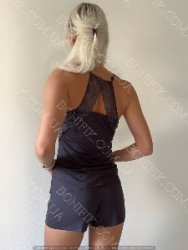 Також мереживна вставка додана на спинку. Коротенькі приталенні шорти з м'якою резинкою на поясі та мереживною вставкою внизу.