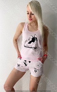 Комплект піжами, приталенного силуету, складається із майки на широкій бретелі, з малюнком собачки спереду.