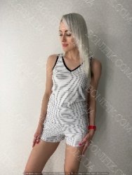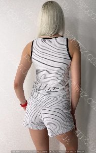 Комплект зшитий із якісної бавовни і складається з майки та шортиків білого кольору.