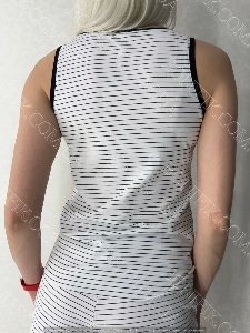 Майка вільного крою, на широкій бретелі, декорована принтом в чорну смужку.