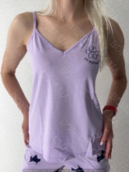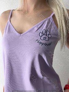 Легка, ніжна та зручна - жіноча піжама із колекції "Lavender Puppies" на тонких бретелях створена для вашого комфорту в теплі дні та затишні домашні вечори.