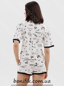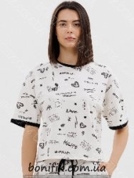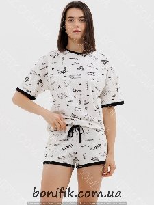 Комплект піжами складається із футболки з короткими рукавами та шорт з малюнком "каліграфічних написів".