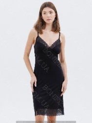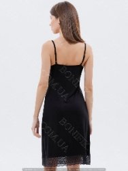 Елегантна і приваблива нічна сорочка в чорному кольорі з вишуканими мереживними вставками по декольте та по низу.