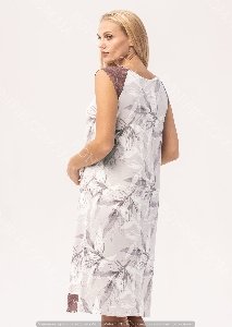Нічна сорочка на широкій бретелі, вільного фасону, довжиною вище колін. Прикрашена квітковим принтом.