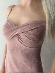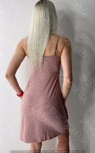 Нічнушка має ліф "вісімка", принтована малюнком "мілкий горошок". Сорочка для відпочинку рожевого кольору, довжиною вище колін.