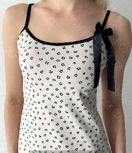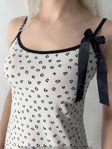 Елегантний акцент — чорний бантик на плечі, додаючий образу грайливості, а леопардовый принт робить модель милою та романтичною.