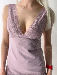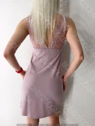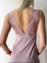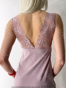 Має напівприталенний силует, довжиною вище колін, на широкій бретелі, виріз V-подібної форми. Нічна сорочка подкреслить переваги Вашої фігури.