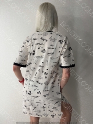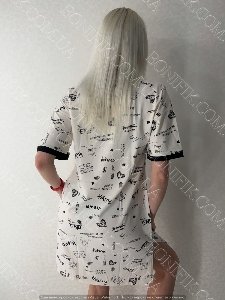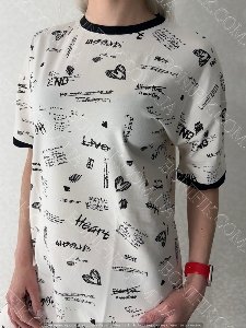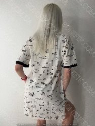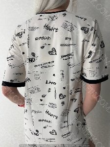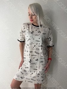 Нічнушка для дому приємного білого забарвлення з додаванням принта каліграфічних написів.