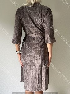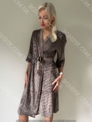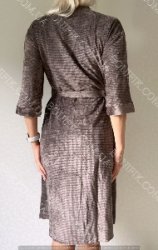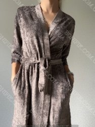 Модель халату вільного фасону, з рукавом довжиною 3/4, довжина халату вище коліна, зав'язується на пояс.